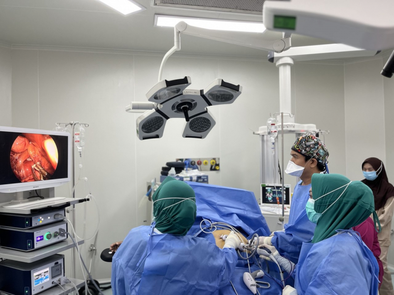 Laparoskopi merupakan teknik operasi modern dengan metode minimal invasif, yaitu tindakan pembedahan yang dilakukan melalui beberapa sayatan kecil pada dinding perut dengan bantuan kamera khusus yang disebut laparoskop. Kamera ini akan menampilkan kondisi organ dalam tubuh pada monitor, sehingga dokter dapat melakukan tindakan dengan lebih jelas, presisi, dan aman. Metode ini digunakan untuk menangani berbagai kondisi medis, salah satunya pengangkatan kantong empedu (laparoskopi kolesistektomi) pada pasien dengan batu empedu atau peradangan kantong empedu.